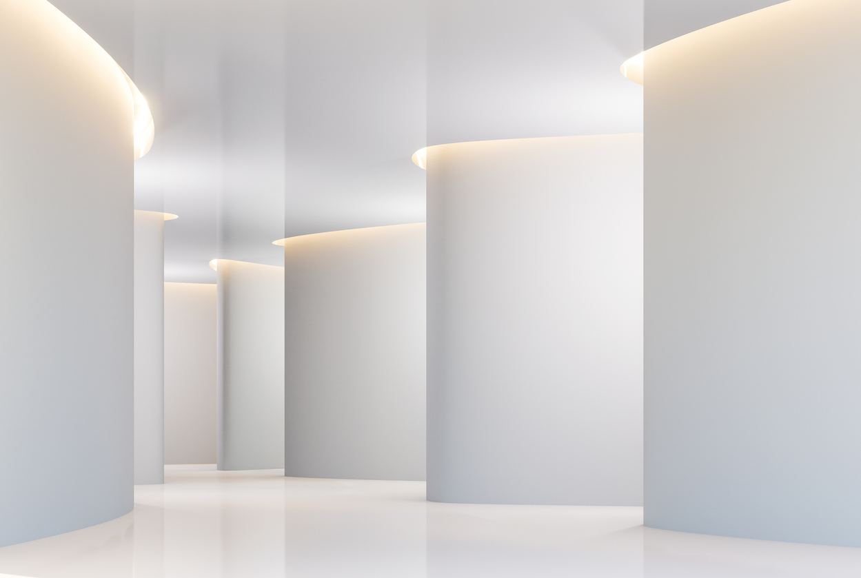跳脫一般經驗裡面的走廊廊道總是屬於線性空間的既定印象,利用大量的曲線與弧形形體塑造過度空間區域的空間意象,轉變原本大眾對於廊道空間的既定觀念,運用天花板曲線將原有結構包裹住,天花板照明運用橢圓形體相呼應,純淨的白色搭配大量地相同的弧形語彙來共同營造出一種輕盈、流動且有機自然的空間型態。