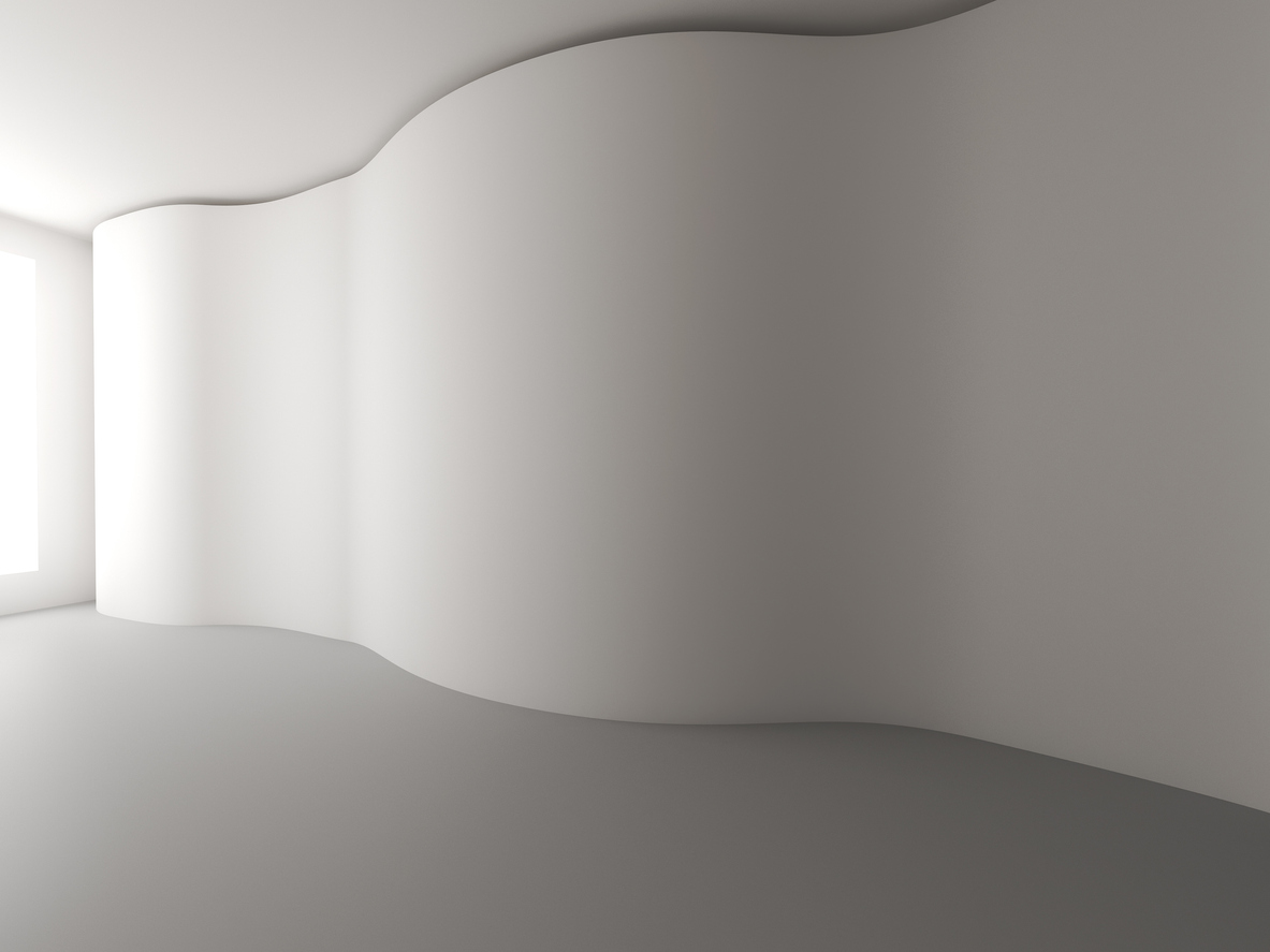 柔軟的力量總是綿延不斷的鋪成開來,剛硬的實體卻借由彎曲表面來揭開實存空間的實質接觸,不只是在視覺張力的呈現,更轉譯了量體的另一種修辭學上的優雅姿態。空間是否也能夠呈現柔軟型態,透過何種手段達到空間型態上的輕柔,例如利用牆角塑造出弧形型態軟化空間,或者利用牆面與天花板的曲線或弧形曲面,讓原本銳利生硬的角落陰影得到舒放的視覺效果。